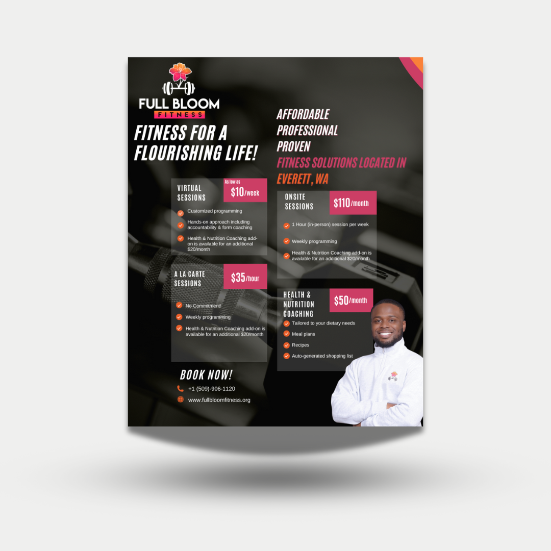 Full Bloom Fitness offers personalized fitness coaching, innovative corporate wellness programs, expert health and nutrition consulting, and professional fitness event planning.